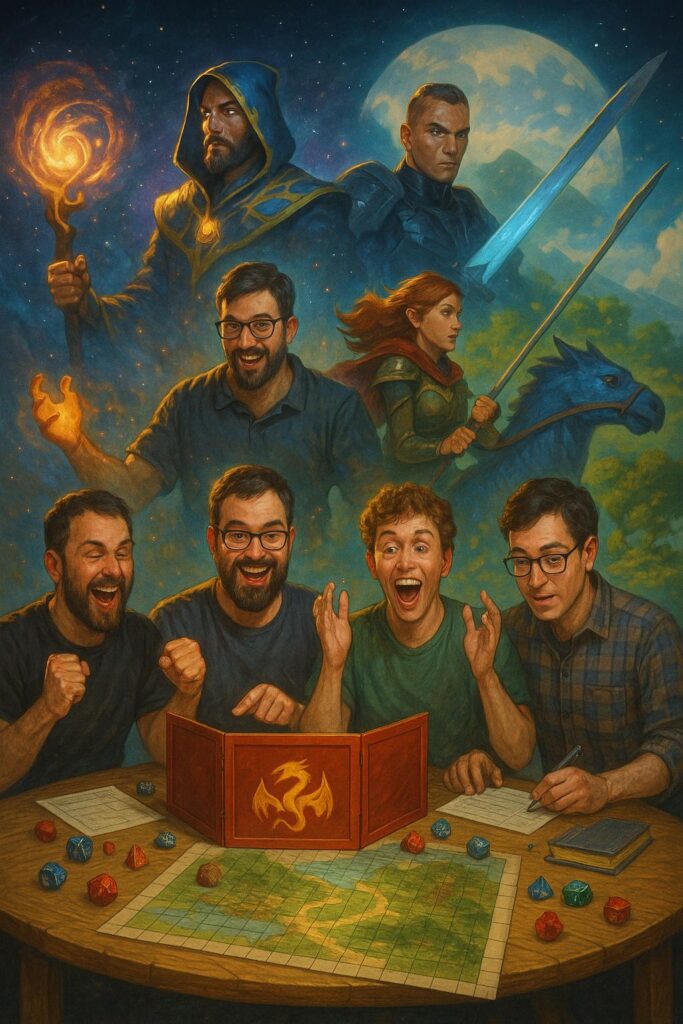Des Gars et Dragons, c’est une série où quatre passionnés de jeux de rôle se réunissent autour de la table pour vivre une campagne épique dans l’univers de Héros : Origine. Suivez nos péripéties, nos décisions imprévisibles, nos moments héroïques… et nos échecs critiques. Que vous soyez joueur vétéran ou simple curieux, embarquez dans une aventure humaine, drôle et immersive. Si tu es curieux, abonnes toi a nos différentes plateformes et viens rire avec nous.
